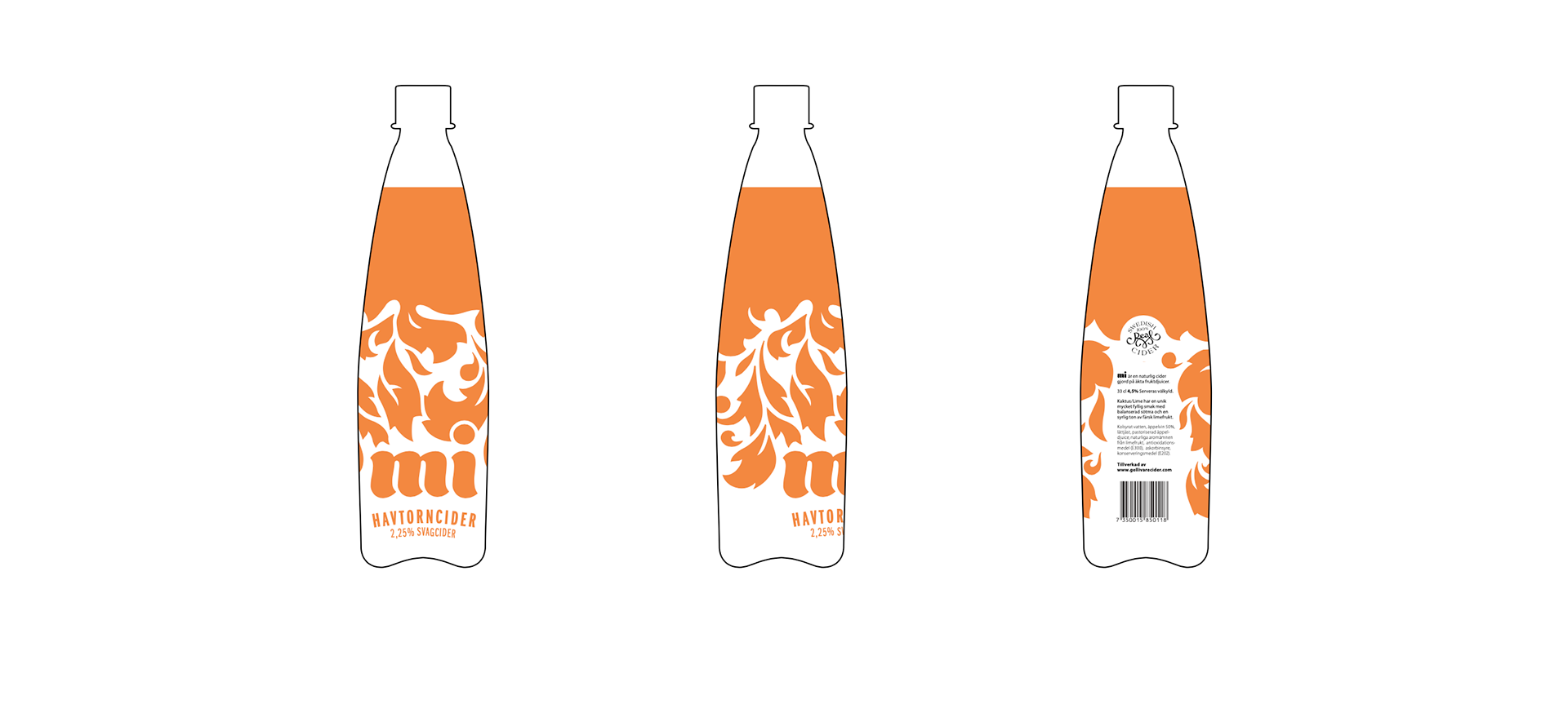 Flaskdesign och varumärke togs fram för märket Mi Cider. Flaskan vann det årets guld i produktdesign i den internationella designtävlingen